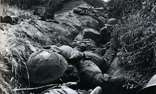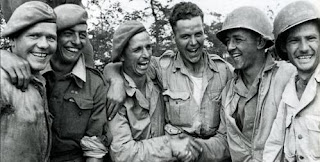 | Британские и американские солдаты вместе на плацдарме под Анцио. Только 13 солдат из союзнического контингента в 50 ООО чел. погибли при первых высадках в районе Анцио, подорвавшись на минах. |
